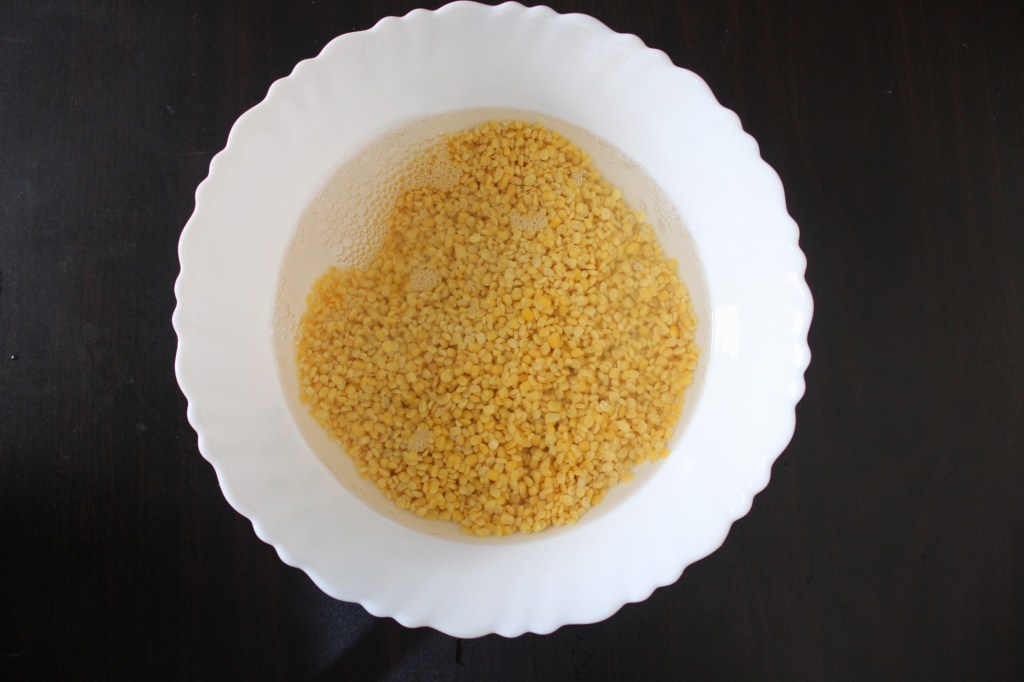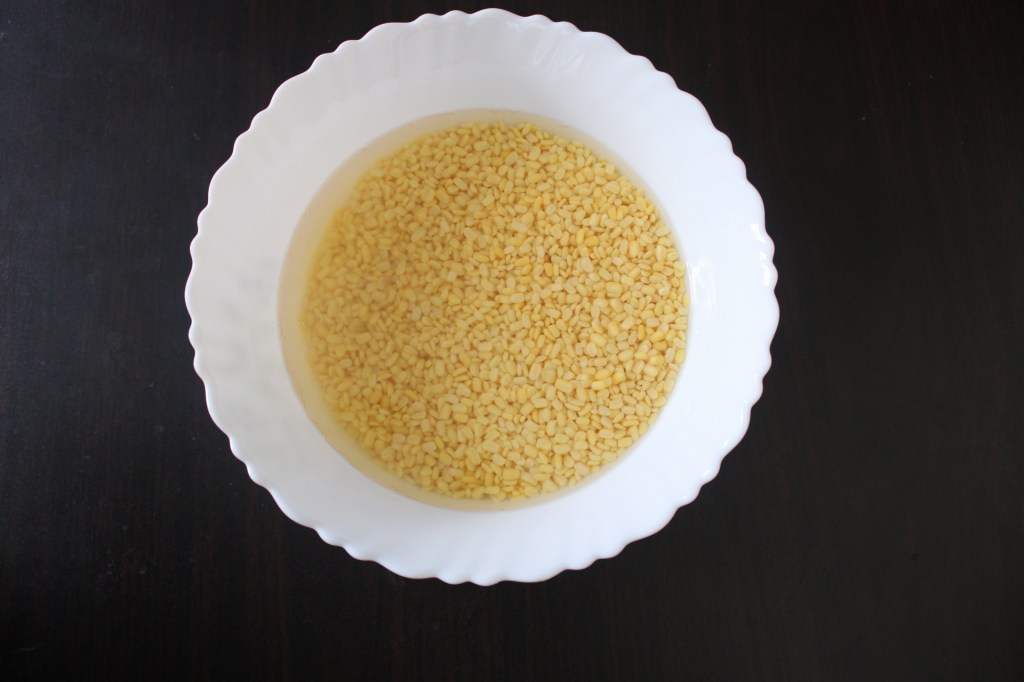 - Then soak the moong beans for 1/2 to 1 hour in a bowl with enough water to cover. Do not soak more than 1 hour.