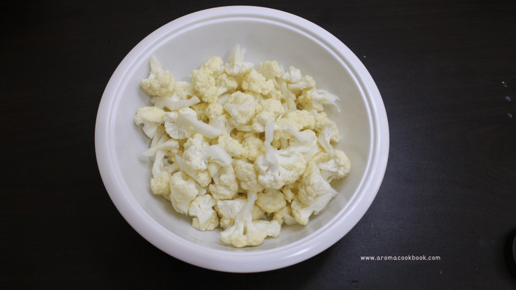 - Use fresh and tender cauliflower head for best taste. Separate it into bite sized florets so that they are easy to deep fry or bake.